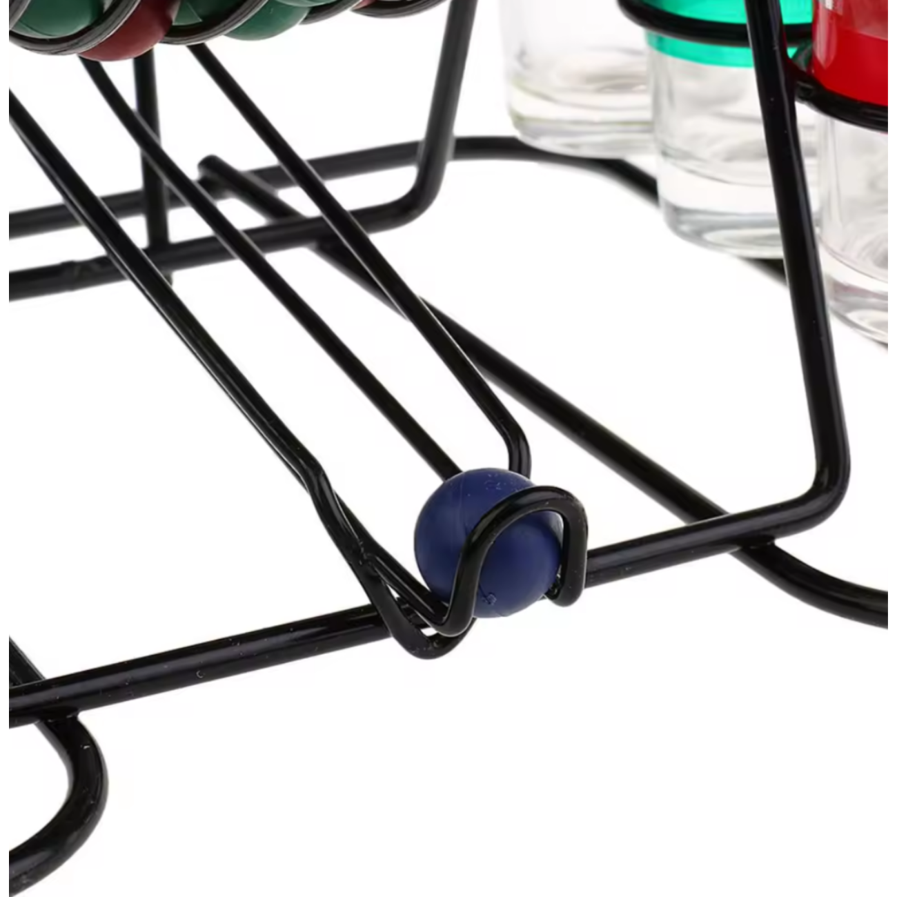 Con este Bingo de Shots metálico, la diversión está asegurada. Su diseño resistente de metal incluye 6 vasos de vidrio en colores diferentes y bolas que combinan con cada color. Solo gira la tómbola, saca una bola y ¡a beber el shot del color que te toque!