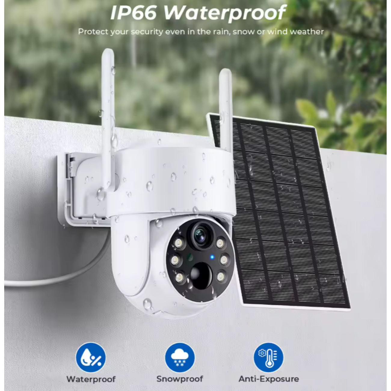 ¿Buscas una solución de seguridad confiable, ecológica y fácil de usar? Nuestra cámara de seguridad 1080p con panel solar Wi-Fi es la opción perfecta para proteger tu hogar, negocio o espacio al aire libre. Gracias a su diseño impermeable IP66, esta cámara puede resistir condiciones climáticas adversas como lluvia, polvo y viento, garantizando un rendimiento duradero en exteriores.