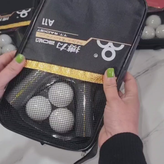 Embalaje: raqueta de tenis de mesa de 2 piezas con bolsa.