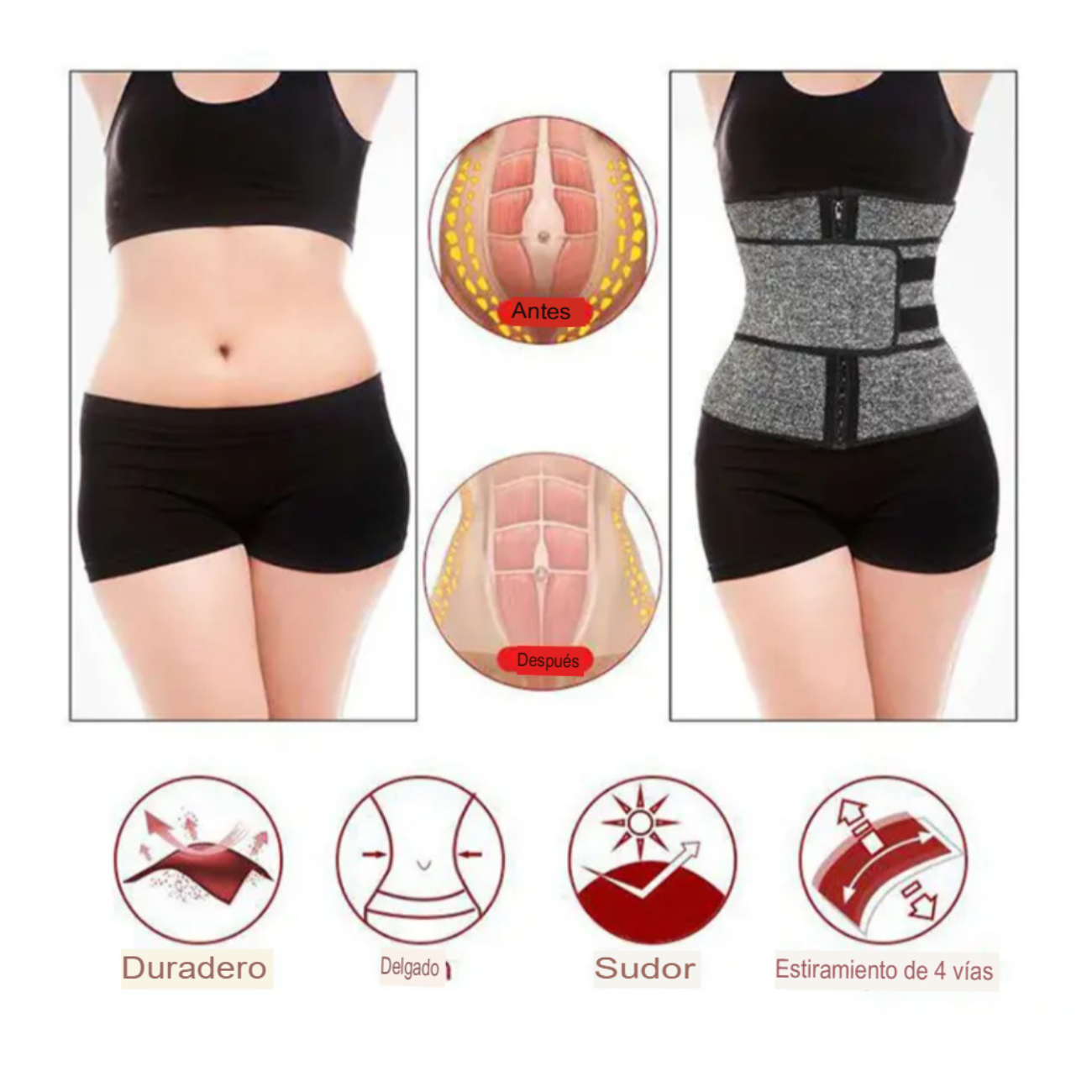 Faja modeladora y reductora de cintura para mujer, ideal para moldear la figura, mejorar la postura y apoyar en rutinas deportivas. Con diseño de doble compresión y ajuste seguro, ayuda a afinar la cintura y acelerar la quema de grasa abdominal durante el ejercicio.