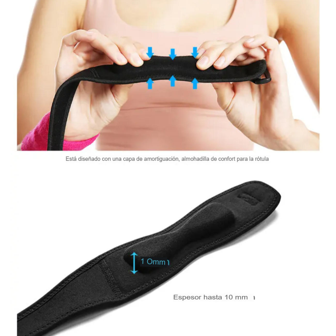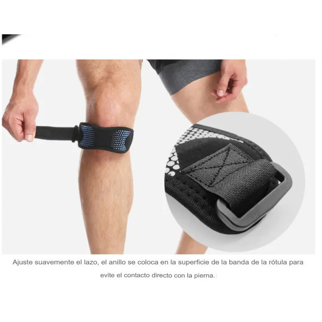 3. Correa de rótula estable, diseño antideslizante que evita que la correa de rótula se caiga fácilmente desde la rodilla.